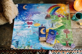 En zo ontstond het Gevoelskompas kinderkaartendeck! Handgeschilderd, vol kleur en warmte! Een kinderkaartendeck dat jouw gevoel als gids gebruikt. Zo kun je je mee laten nemen op reis vol fantasie, plezier en verbinding.